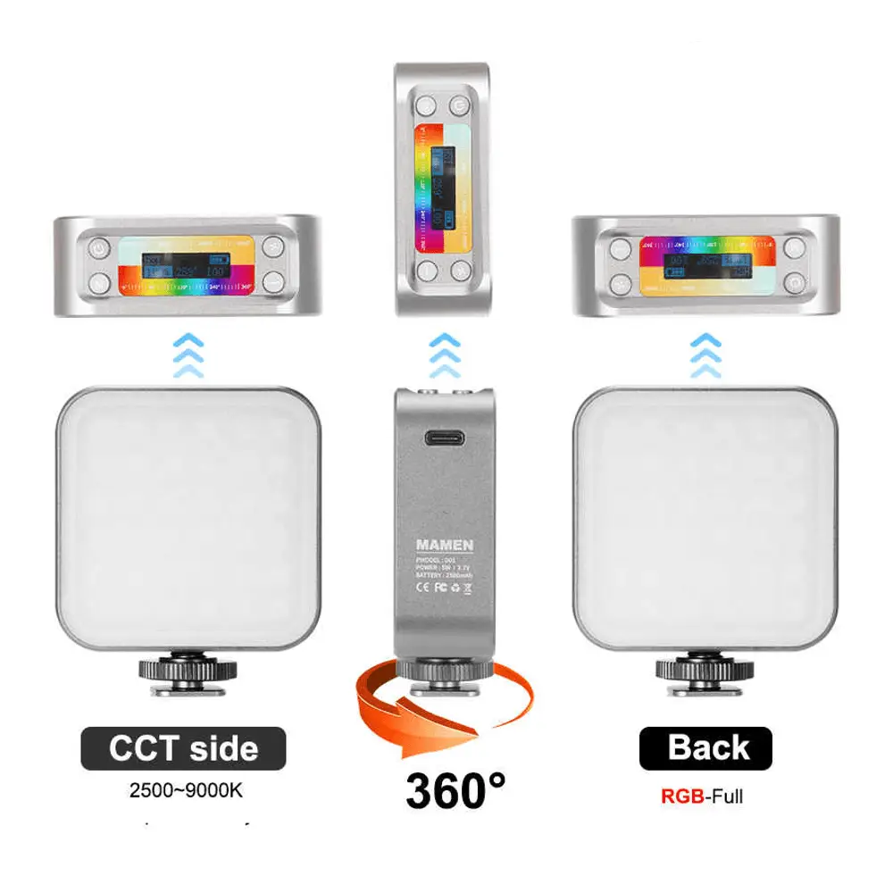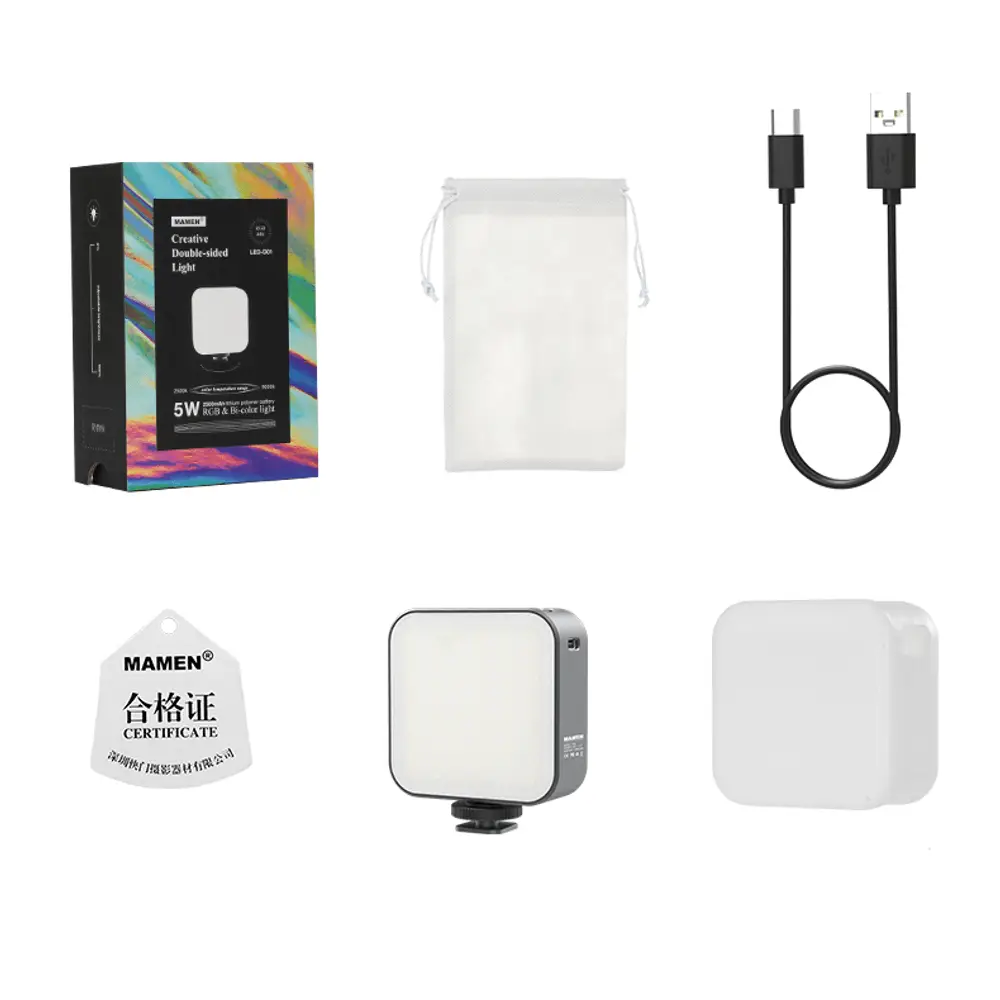 O Iluminador Vídeo Light Mamen LED-01 possui LEDs de alta qualidade de longa duração, o brilho atinge 1300Lux, mais brilhante e uniforme. Sua Temperatura de Cor 2500K-9000K e Renderização de Cores CRI9+. Possui um Display Oled HD para ajustes de Cores, o Modo CCT bicolor, controla a temperatura da cor, mistura a luz uniformemente para criar uma percepção de luz em vários níveis e atender a vários cenários e requisitos. Possui 12 modos de cena de efeito de iluminação, os modos de cena podem ser alternados livremente, criam vários ambientes facilmente.