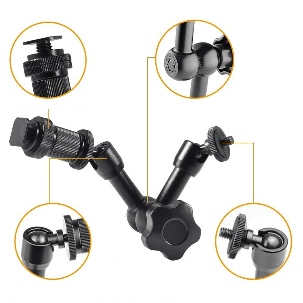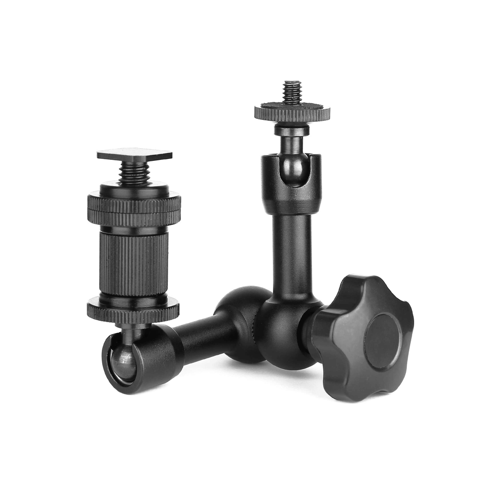 Monte um Monitor de Referência, Iluminador, Microfone ou qualquer outro Acessório em seu equipamento de Foto e Vídeo em quase qualquer ângulo com este Braço Mágico Articulado Mamen 7″ com Sapata e Adaptador. O Braço Articulado Magic Arm de 7″ / 17.8cm de alumínio e aço inoxidável possui parafusos de Rosca 1/4″-20 em cada extremidade e um adaptador de sapata removível acompanha para montagem na montagem de sapata de sua Câmera ou Gaiola Cage.