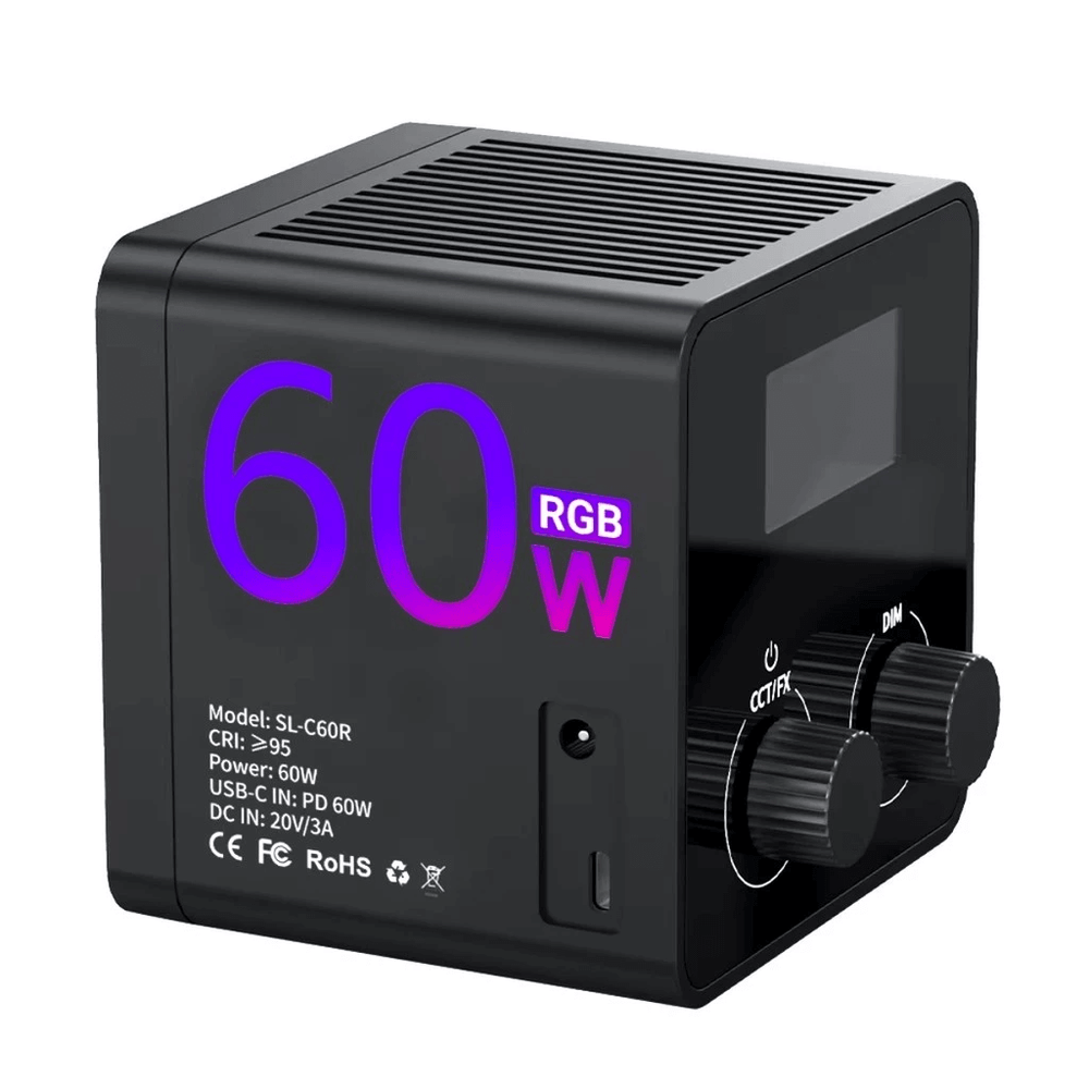 O LED Mamen SL-C60R COB é uma luminária de 60W de potência, mesmo em seu formato compacto e portátil, o Iluminador COB SL-C60R produz até 19700Lux à 0.5 metros de distância quando está definido temperatura de 6500K e o brilho em 100%. A saída RGB da luz permite adicionar cores vívidas às suas produções, fornecendo desempenho de iluminação forte e estável, ao mesmo tempo que serve como uma luz prática e descomplicada.