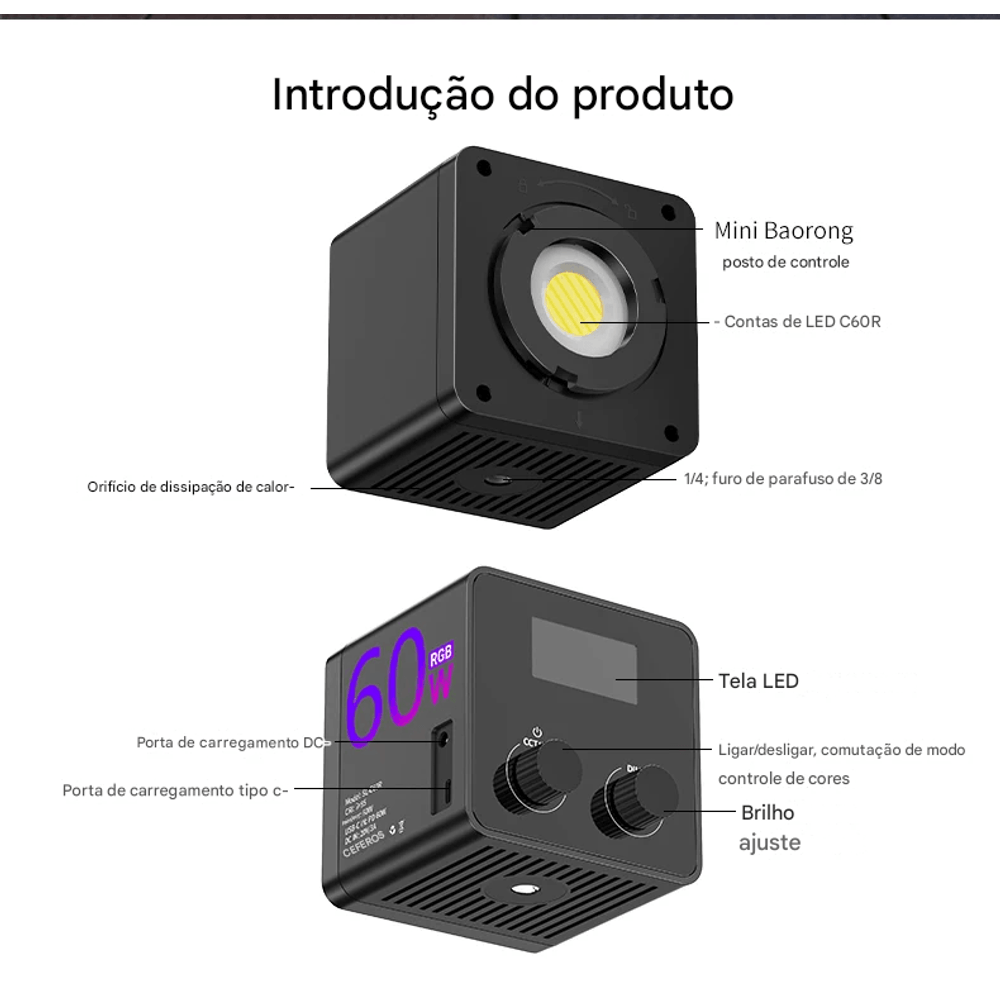 O ultracompacto Iluminador LED Mamen SL-C60R COB Mini Spotlight RGB 60W (Bivolt) possui design minimalista e uma série de recursos bem pensados. Projetado para produções de nível profissional, o LED Mamen C60R Spotlight oferece potência robusta de 60W, temperatura 2500K-6500K ajustável de 0 a 100%, Modo RGB 360° Full Color, bem como uma bateria interna recarregável e tecnologia de carregamento rápido PD. Seu sistema também integra 24 efeitos de iluminação criativos para ajudá-lo a simular diferentes ambientações. Esta é uma solução de iluminação prática para criadores de conteúdo e videomakers que procuram uma luz portátil e silenciosa sem sacrificar a qualidade da imagem.